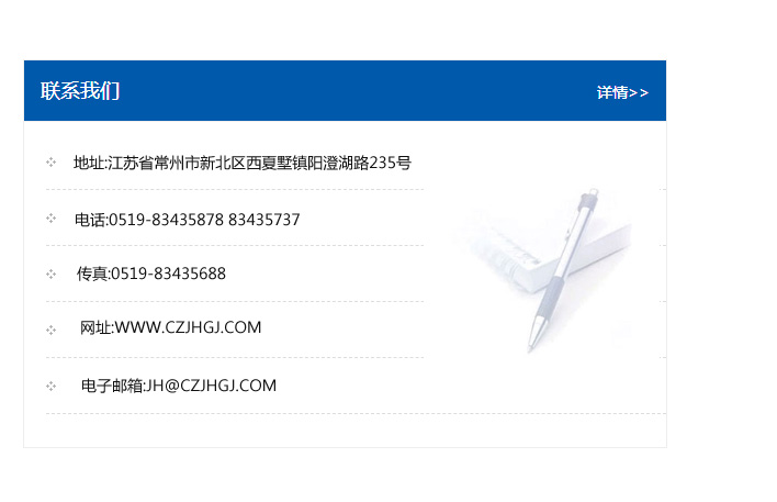 傳真:0519-83435688    郵編:213135    網址:WWW.czjhgj_com.jxcoc.com    電子郵箱:JH@czjhgj_com.jxcoc.com